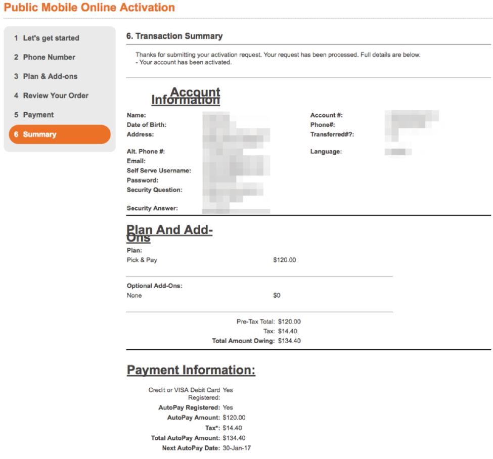 拿到SIM卡之后, 即可上它的官网https://www.publicmobile.ca,选好计划,填写表格开通你的电话,或直接点此即可填写表格